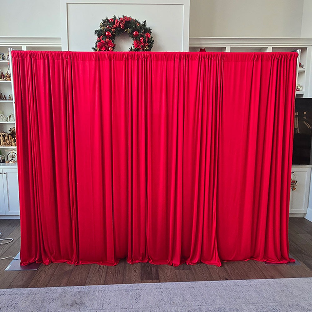 Our professional-grade pipe and drape system includes sturdy uprights, adjustable crossbars, and durable base plates that create a clean, polished look. The rich red drapes provide excellent coverage for hiding walls, dividing rooms, or designing eye-catching backdrops. Whether you’re creating a dramatic entrance, dressing a stage, or setting up a festive photo area, this setup adapts to your event’s size and style.