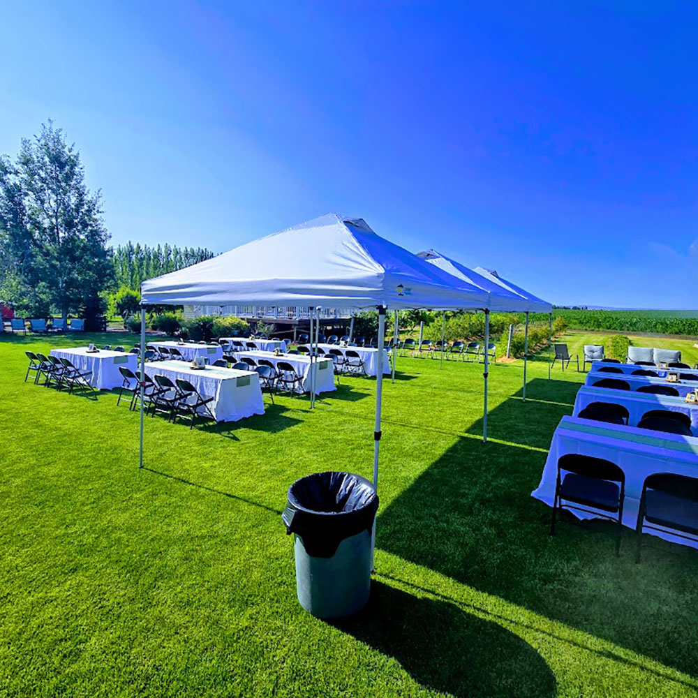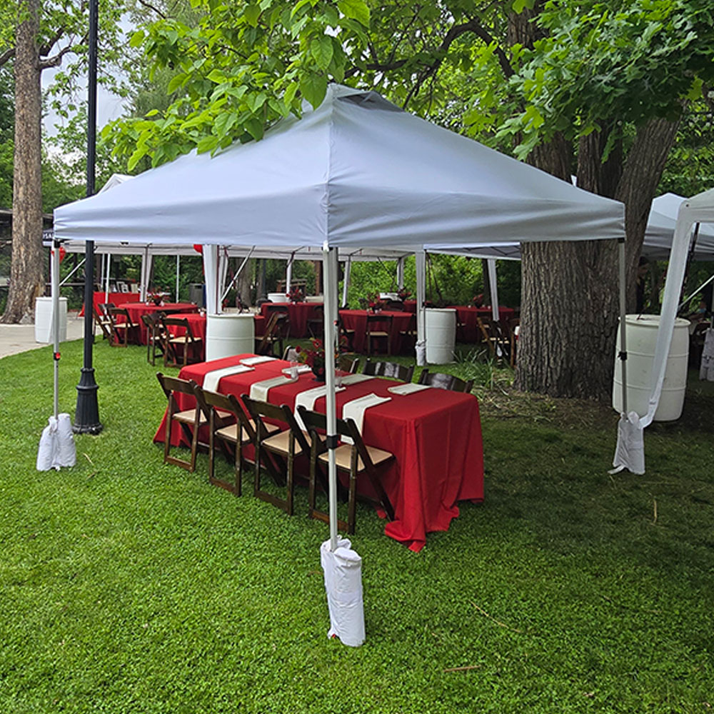 Transform your outdoor event into a comfortable, shaded space with our 10’x10′ popup tent rental. This compact yet spacious tent is perfect for weddings, corporate events, farmers’ markets, backyard parties, or any occasion requiring a temporary shelter.